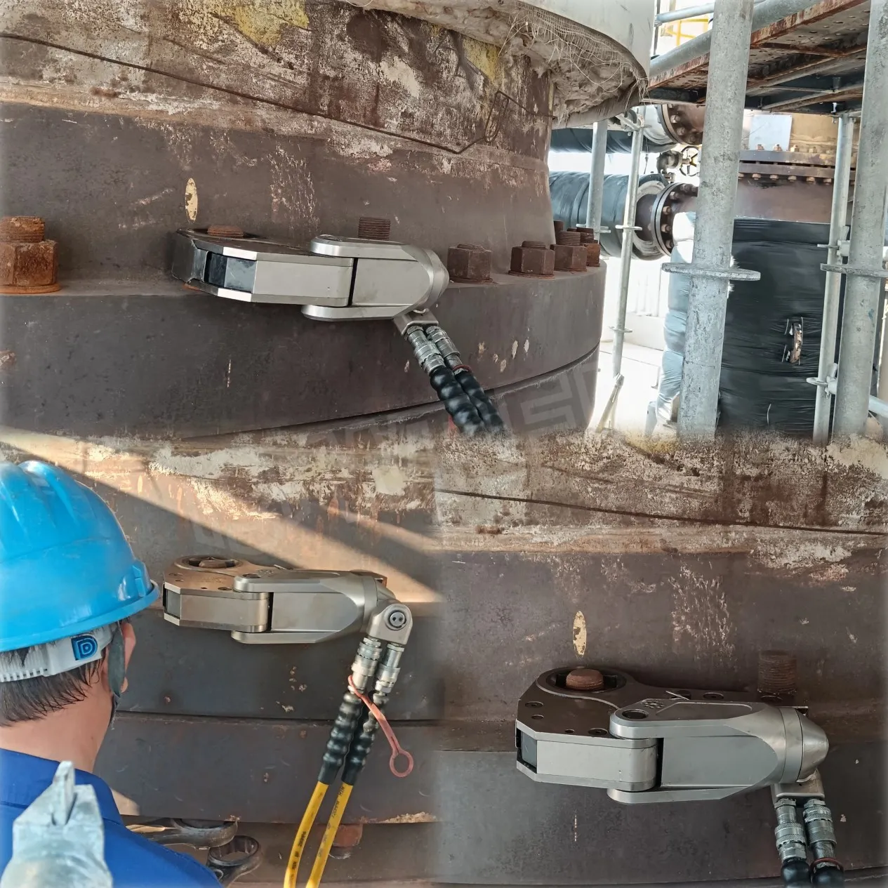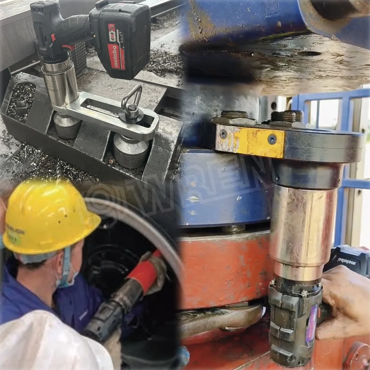 Кроме того, для болтов на специализированных трубах, таких как показано ниже, ручные ключи ранее использовались с ручным забиванием, что отнимало много времени и трудоемко. Изучив ситуацию, инженеры WREN порекомендовали электрический динамометрический ключ серии WED CX. Способный выдавать до 8000 Н · м крутящего момента, он оснащен дисплеем с шагом регулировки 1 Н · м. При вводе целевого крутящего момента отклонение выходного крутящего момента не превышает 5%, а отклонение повторяемости остается в пределах 2%. Полный набор электрических динамометрических ключей включает в себя две быстрозаряжающиеся литиевые батареи, позволяющие использовать один, пока другой заряжается, обеспечивая непрерывную и стабильную работу.